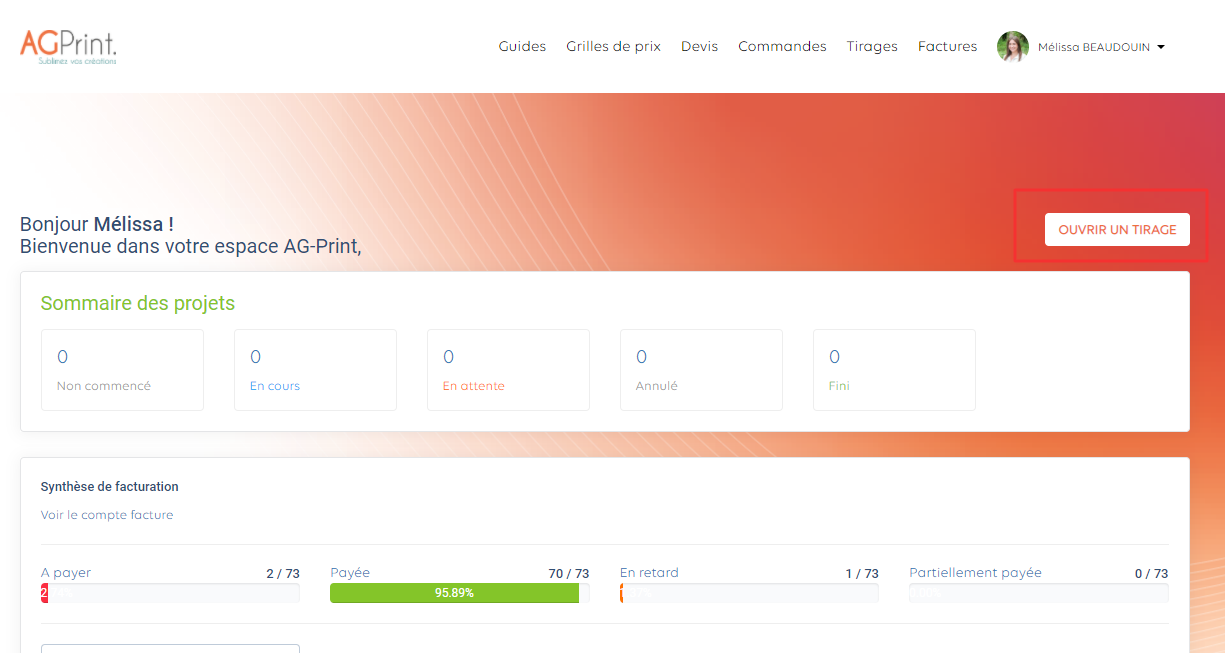 Une fois connecté à votre espace client, cliquez sur “Ouvrir un tirage”