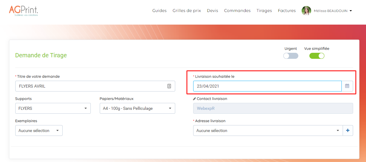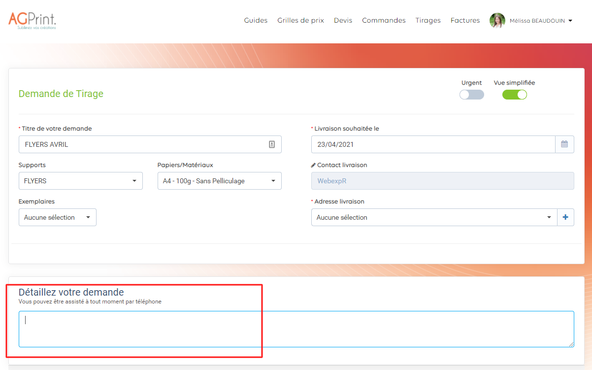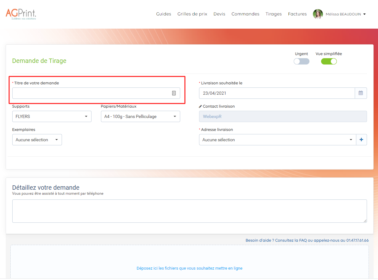 Renseignez le nom de votre tirage (nom du projet, ou nom du support…)