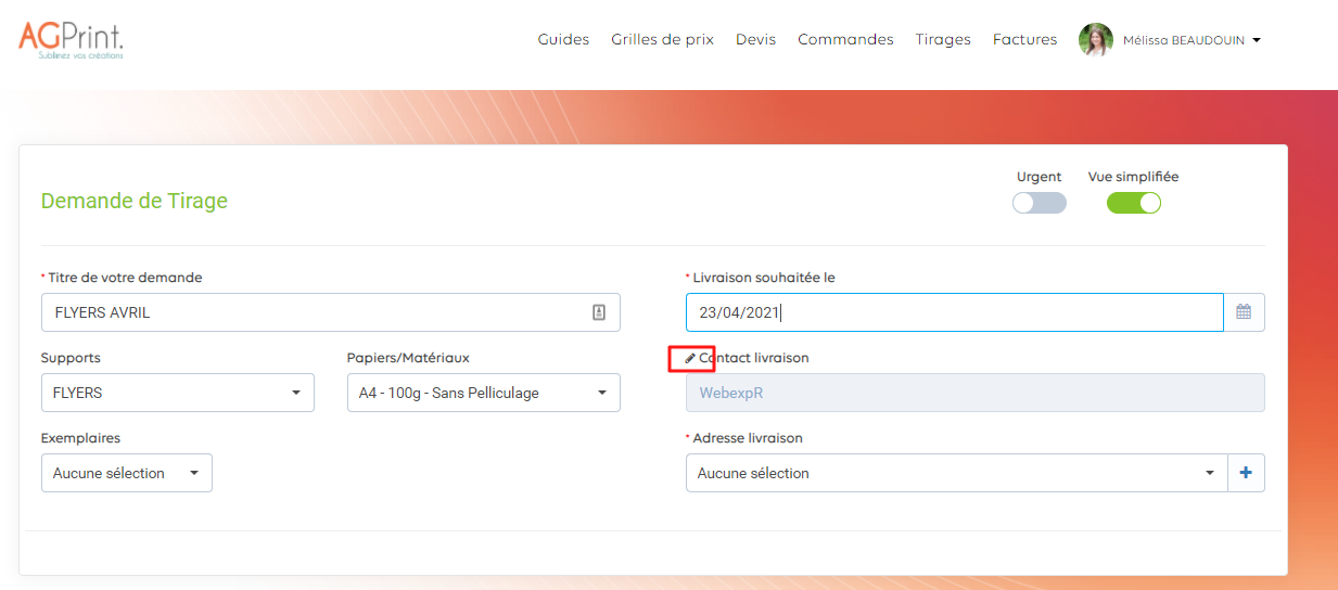 Si besoin, vous avez la possibilité de modifier le contact de livraison